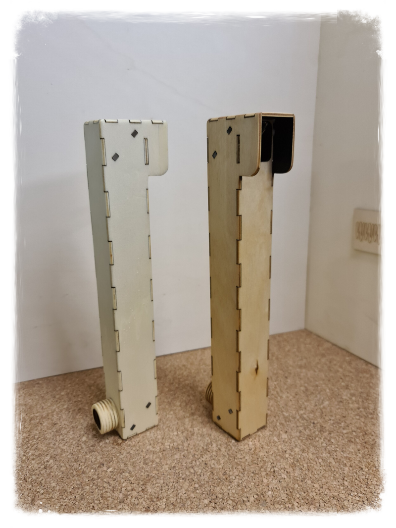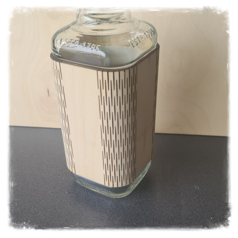 Die Verriegelung hab ich ganz einfach mit Doppelseitigem Klebeband fixiert und dann das Fass vollflächig aufgeleimt.