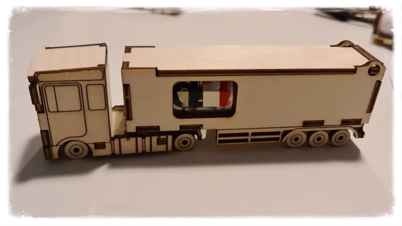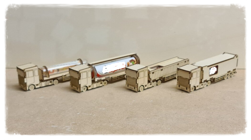 Kleiner LKW für die Schokoriegel die mit "Du" anfangen.