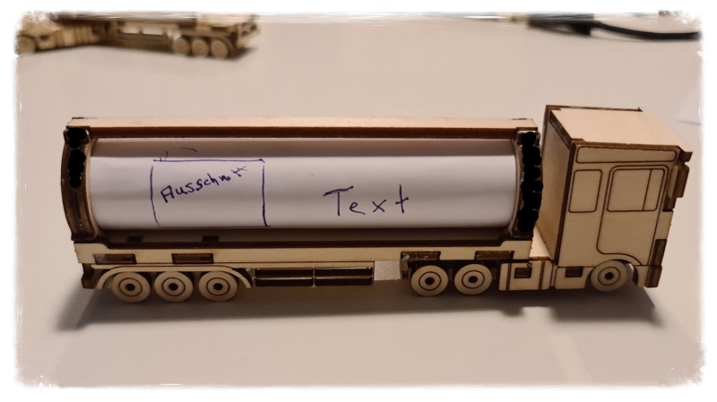 In den Auflieger lässt sich ein Papier einrollen, z.B. ein Gutschein.